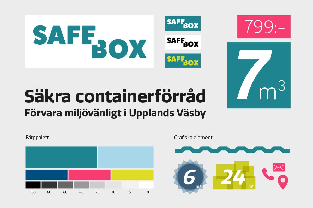 För Safe Box har vi tagit fram en helt ny grafisk identitet. Samt gjort om webbplatsen där man enkelt kan boka sitt förråd online.
